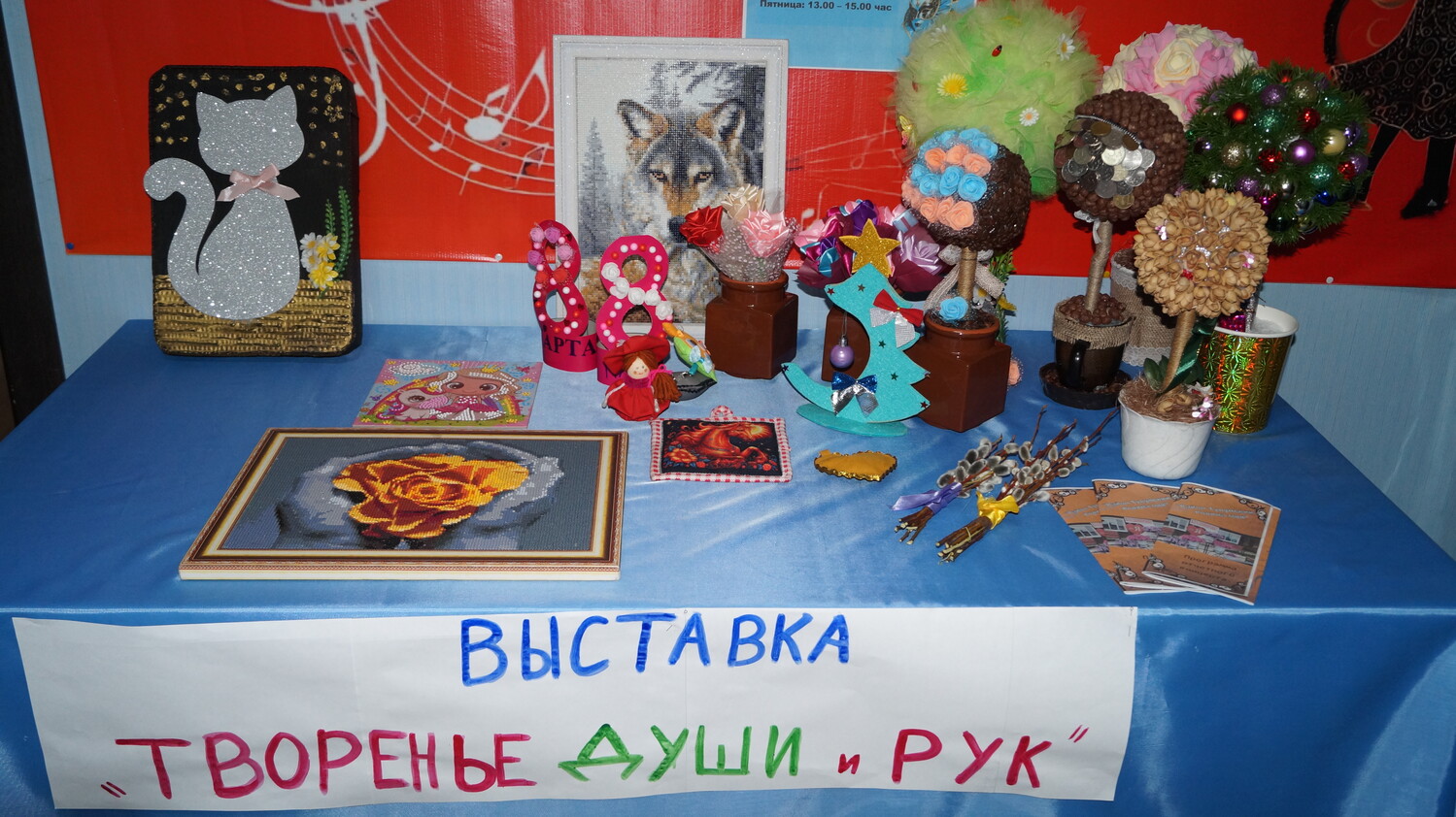 В рамках творческих отчётов, 3 марта в МКУК «КДЦ д. Владимировка» не только прошёл праздничный концерт, но и была организована выставка декоративно-прикладного искусства (ДПИ) под названием «Творение души и рук». Эта экспозиция стала настоящим украшением фойе культурного центра и привлекла внимание всех гостей мероприятия. На выставке были представлены работы, выполненные в разных техниках: и видах народного творчества.